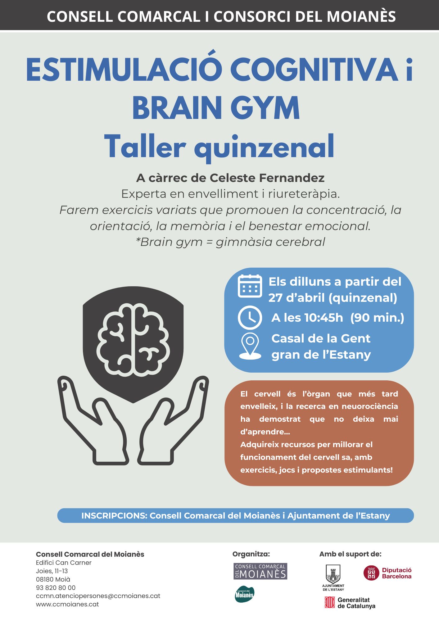 Inscripcions al Consell Comarcal del Moianès (93 820 80 00) i a l'Ajuntament de l'Estany.